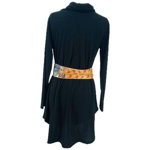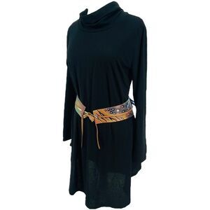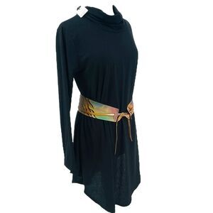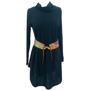 LINHUIER NEW Jersey Soft Long Sleeve Shift Tunic Turtleneck Dress Black Sz Large