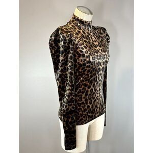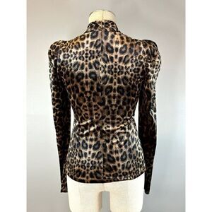 LINI Gillian Puff-Sleeve Velvet Top in Leopard Size XS