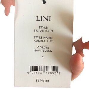 LINI Small Audrey Navy Blue Silky Satin Lace Trim Crop Long Sleeve Blouse