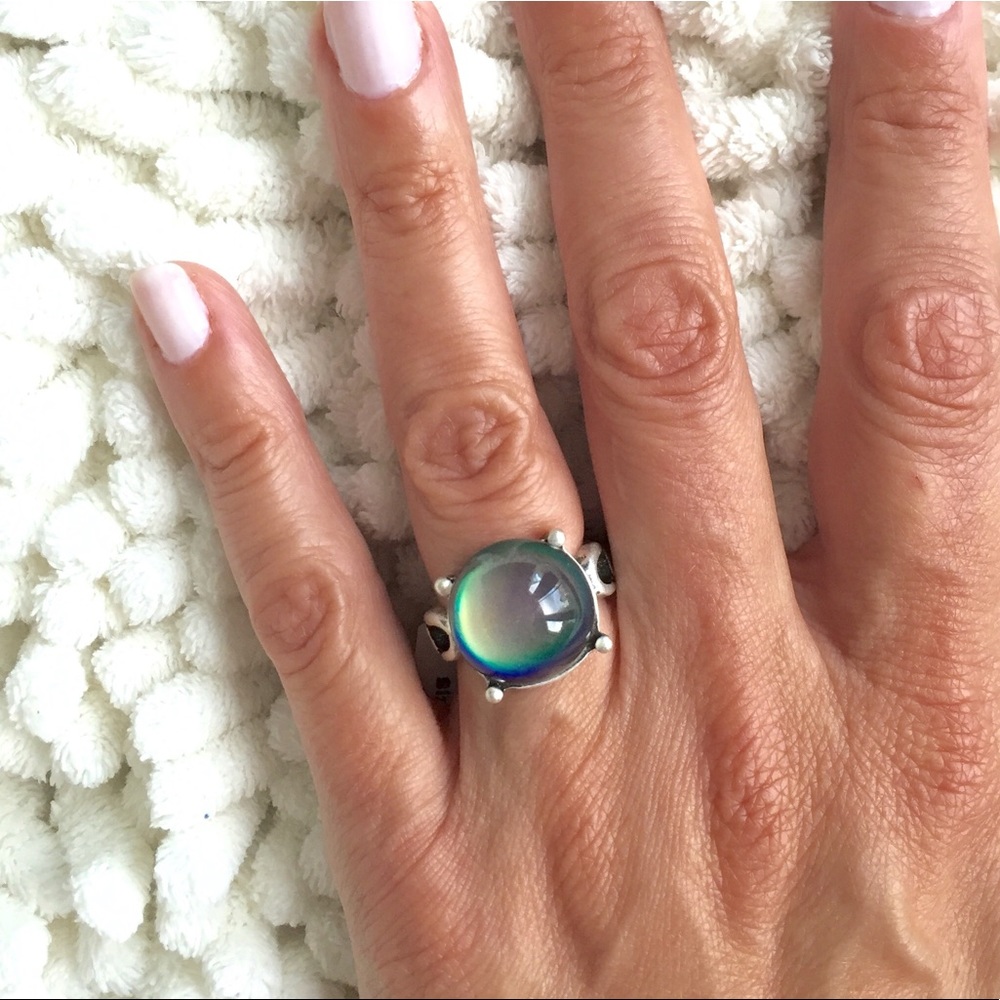 Bold round glass statement mood ring. Link chain chunky band and frame. Stunning color changes.