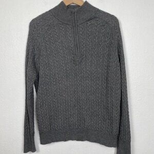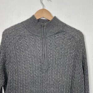 LINK Grey Cashmere & Angora Cotton Blend 1/4 Zip Cable knit Sweater Size: XL