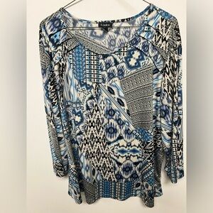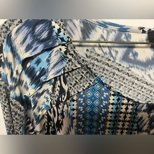 LINKS TOP. WITH VARIOUS SHADES OF BLUE. SIZE LARGE