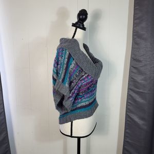 LINQ LOS ANGELES Gray Teal Purple Striped Wool Angora Knit Cropped Sweater Sz S