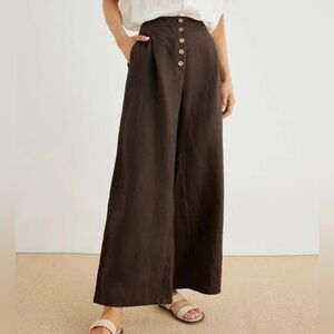 LINTIGO 100% Linen Wide-Leg Pant Brown size L Resortwear Summer Casual Boho