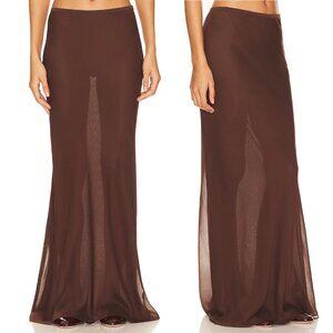 LIONESS Endless Maxi Skirt in Chocolate Brown Sheer Chiffon Small S
