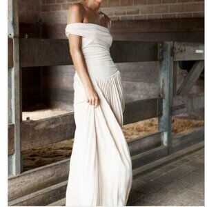 LIONESS Field Of Dreams Dress in Oatmeal Medium New Womens Maxi Gown