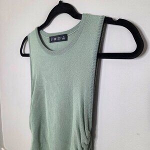LIONESS Solid Green Military Minds Tanks Ruched Dress