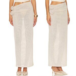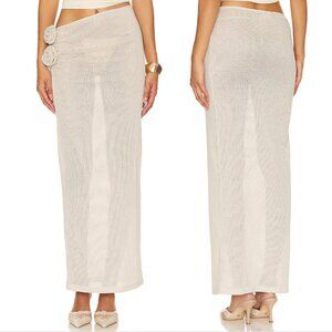 LIONESS Soul Mate Maxi Skirt in Porcelain Cream Knit Crochet Sheer Small S
