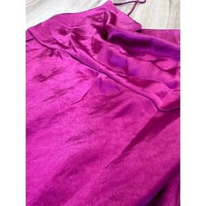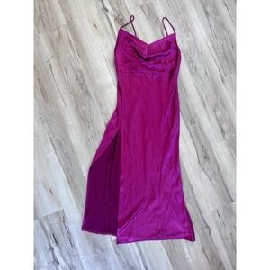 Beautiful barbie pink midi slip dress. Gorgeous eye catching sheen, skinny straps, high side slit, zipper back. Excellent condition. size Large