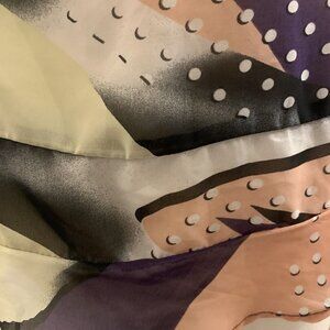 LIOR PARIS. Size Large. Semi Sheer Chiffon Button Up Shirt. Please check pics for band and slight flounce. Very fashionable. Back yoke. Probably poly. Center back 25.5". Sleeve 19". Bust 40".