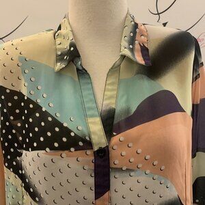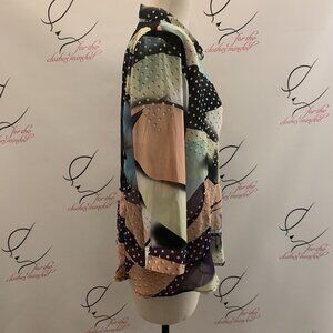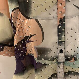 LIOR PARIS. Size Large. Semi Sheer Chiffon Button Up Shirt. Band Flounce B26