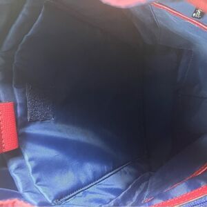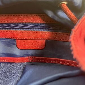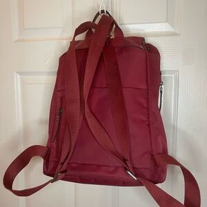 LIPAULT Red Wine NYLON Laptop large Backpack Bag faux leather flop top closure two side zipper,drawstring top closure the inside lining has a side zipper and two side pockets two padded compartments .Pre owned in good used condition signs of wear on the flop top has some peelings on the inner trim and small peelings on the outer trim see all pictures any questions please message.F6