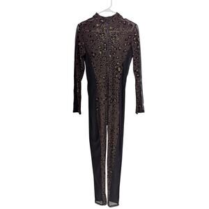 From Lips Inc. comes this awesome sexy onesie, bodysuit, Catsuit, jumpsuit, in a front and back in black, brown and gold metallic leopard spots! The sides are sheer, see through black net! Long sleeves, super lightweight, full front zipper! Size Large, Excellent! Superb EUC Condition! **ABSOLUTELY GUARANTEED CONDITION: EUC MINTY-EXCELLENT TO LIKE-NEW, by Lily @HauteClub!***