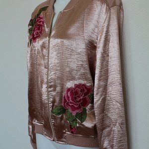 LIPSLIDE Bomber SILKY JACKET Shine EMBROIDERED Flower Detail VINTAGE - Size S