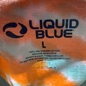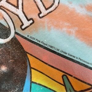 This retro looking orange and blue tie dye Pink Floyd Dark Side Of The Moon graphic band tee from Liquid Blue makes a great closet staple! Preowned and in great condition!