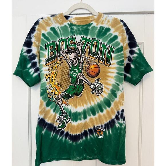 LIQUID BLUE Tie Dye Boston Celtics Basketball Dunker Skeleton T-Shirt Size M