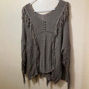 LIRA Women's Brown Fringe Accent Knit Oversized Boho Sweater Size Small.