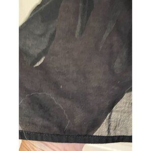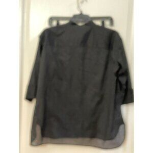 Lis Lareida black button down shirt with 3/4 sleeves. Gauzy material.