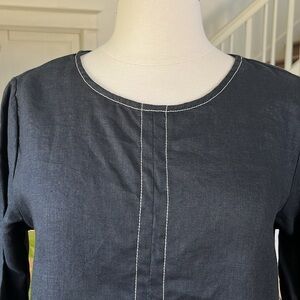 Fit: sleeves come to my elbows. Length covers my bottom in back. No stretch