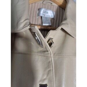 LISA INTERNATIONAL Lamb Skin Leather Sweater Vest Women's L Beige Button Up Y2K
