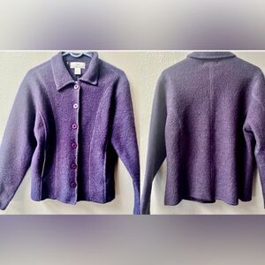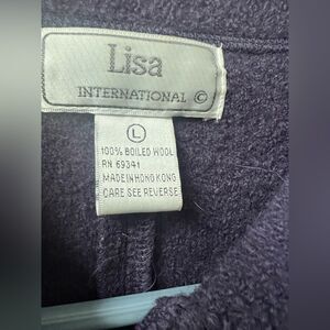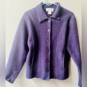 LISA INTERNATIONAL VINTAGE WOMENS PURPLE BUTTON SOWN 100% BOILED WOOL SIZE L