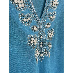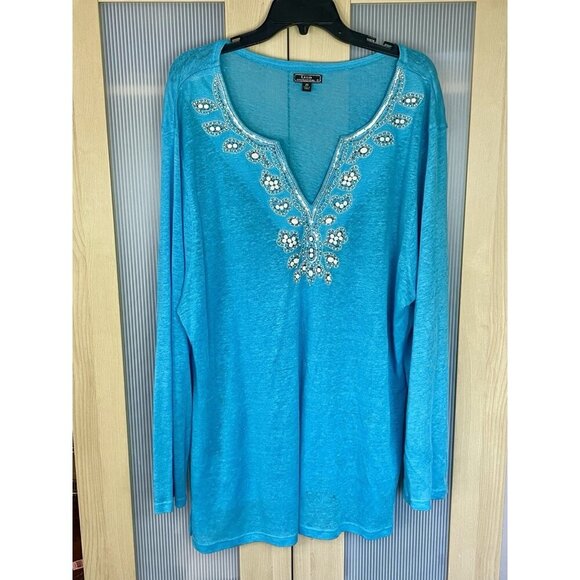 LISA International Women’s Linen Top Sz XXL Sweater Blouse Beaded Casual Summer