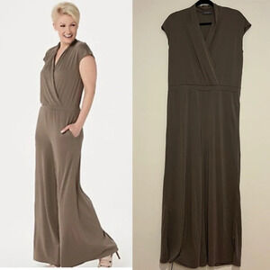 LISA RINNA COLLECTION Surplice Wide Leg Lagenlook Stretchy Modal Blend Jumpsuit