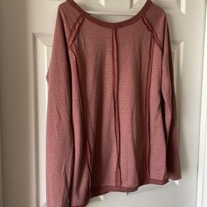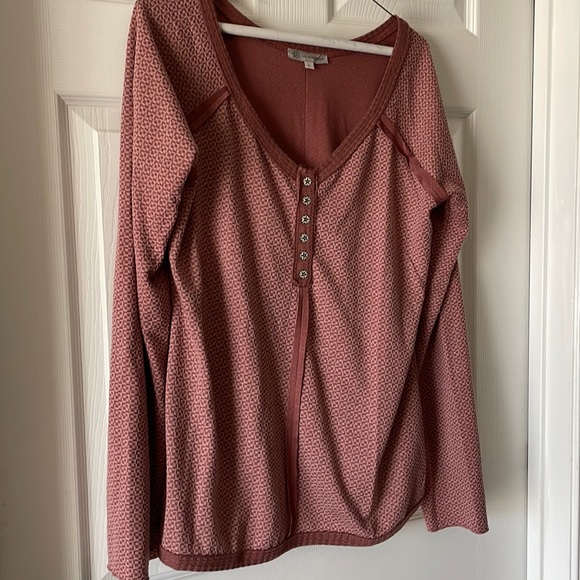 Beautiful new wine colored top. Never worn. Long sleeves. Six buttons down front. Raglan edges down back and front and edges.