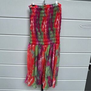 LISA SAYS GAH Echo Smocked Dress Summerburst Sheer XL Drop Waist Strapless