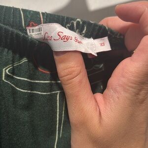 Lisa Says Gah Lauren midi skirt in set the table design. Minor wear but no actual callouts. Stretchy throughout and elastic waist. Pull on style.