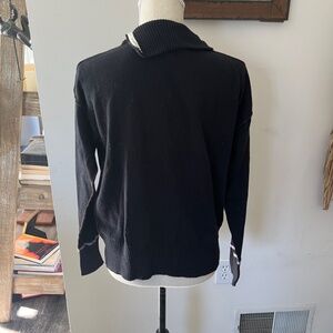 Beautiful cashmere sweater, thumb holes, colored piping. Zipper neck. No stains or holes.
