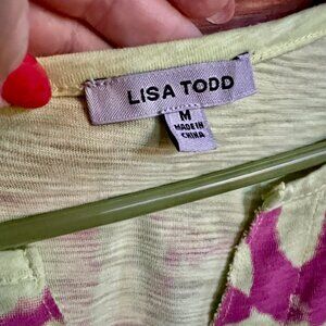 Tie-dye style patterns have been a recurring theme in Lisa Todd's collections, showcasing a blend of contemporary style with a relaxed, bohemian aesthetic.