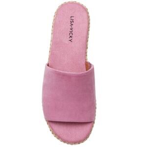 LISA VICKY Smile-V Fox Glove Kid Suede Slip On Platform Sandal in Pink Suede