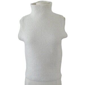 Lisa Yang warm white mock neck sleeveless cashmere sweater.