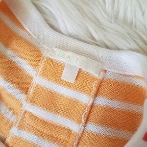 LISA TODD White Orange Red Stripe SS Sweater Flowy Top