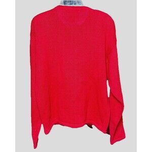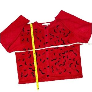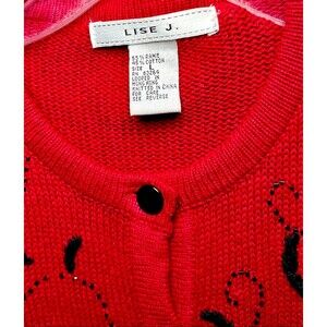 LISE J. Red Granny Cardigan Embroidered Beaded Large Ramie Cotton Long Sleeve