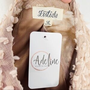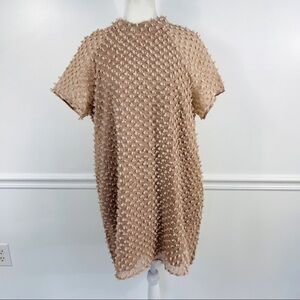 LISTICLE Celina Mocha Swiss Dot Textured Short Sleeve Shift Dress - LARGE