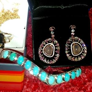 @catlady1958 Hey hun, the Smokey Topaz/Quartz ring is 10k yellow gold. It was my Granny's. In EUC! The Articulated earrings are from Rarities. Rose gold over S.S, Rose quartz dangle, White Zircon paved. Amethyst and either Aquamarine or Blue Topaz I can't remember for sure. They are lightweight and way prettier in person. I haven't figured out the price for some of the items. If you're still interested lmk thanxs💕