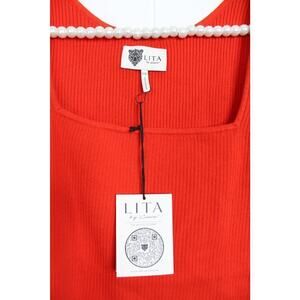 LITA by Ciara Fiery Red Ribbed Knit Cropped Square Neck Tank Size XXL NWT