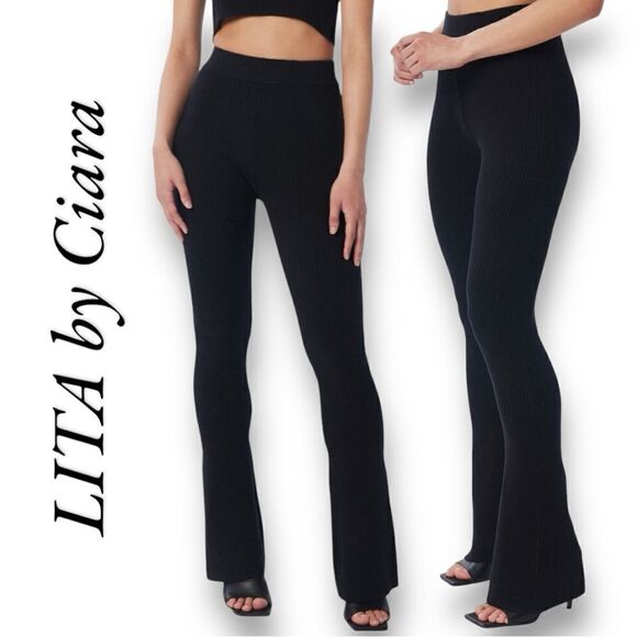 LITA by Ciara Women’s Rib Organic Cotton Flare Pants in the Size Large in Black Color