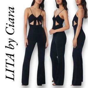 LITA by Ciara Women’s Tie Front Jumpsuit in the Size Large in Black Color