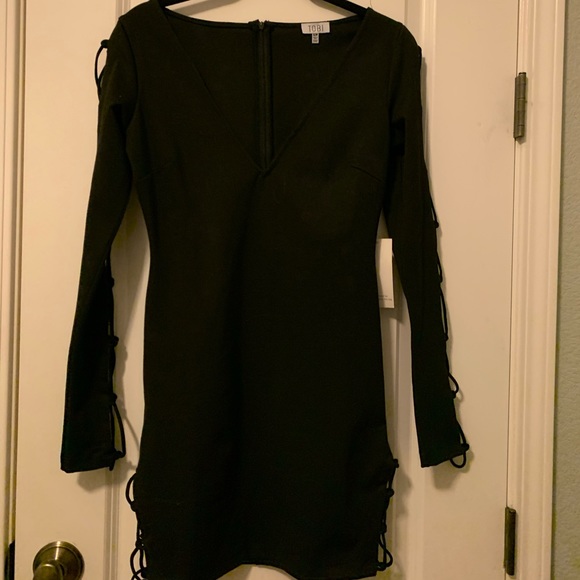 This black dress has openings along the arms and sides. It’s never been worn