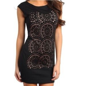 LITTLE BLACK DRESS WITH DUSTY PINK EYELET