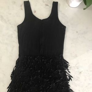 Unique LBD with fringe bottom and 💯leather waistband with brass detailing. Figure flattering and fun to wear. Great condition! Size: XS