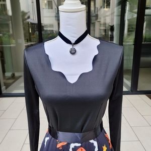 LITTLE BLACK HALLOWEEN DRESS | Pumpkin Pattern Black Ribbon Belt