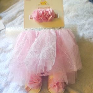 LITTLE CUTIES 3 piece set. Size 0-6mos. Tutu, headwrap, footwrap. NWT
