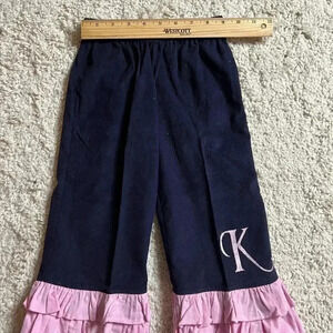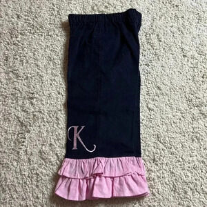 LITTLE GIRLS NAVY PINK RUFFLE PANTS WITH INITIAL “K” EUC SIZE 3