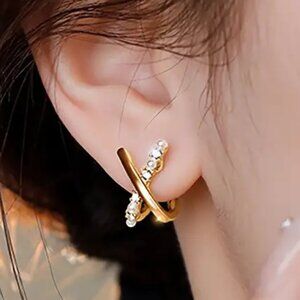 New in original packaging. "X" marks the spot! Tiny faux pearls and clear crystals add to the glamour and femininity of these earrings. MSRP $15.97 USD
