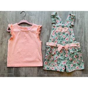 LITTLE LASS Girls 2 Piece Outfit Set Overalls Shortalls Designer Floral Denim 6
