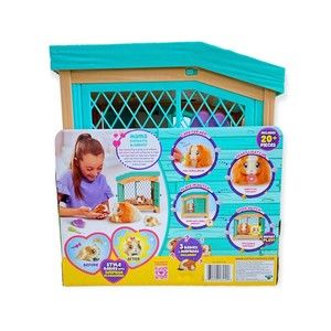 Mama Guinea Pig will have three babies! Feed and care for her and her heart will light up. Place her in her hutch so she can deliver her baby guinea pigs! Style the babies with the surprise accessories.